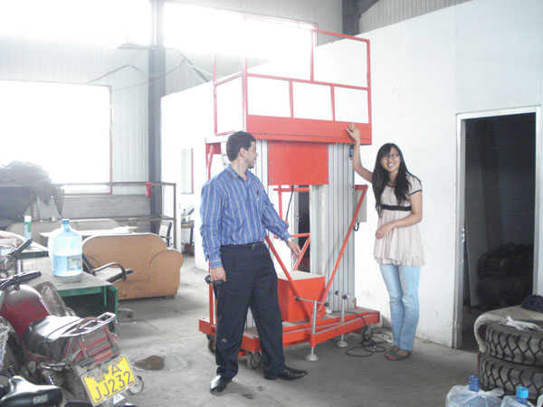 印度客戶來我公司選購鋁合金升降機http://xanyu.cn/