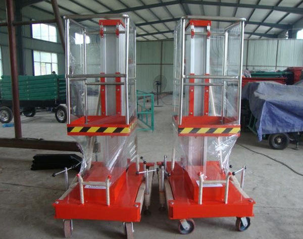 雙柱鋁合金升降機:升降動力分為220V、 380V,或電瓶動力源,特殊環(huán)境也可采用防爆泵站及防爆電器。升高4——10米,載重100-150公斤。主體采用高強度優(yōu)質(zhì)鋁合金材料,具有造型美觀、體積小、重量輕、升降平穩(wěn)、安全可靠等優(yōu)點。廣泛用于工廠、賓館、餐廳、車站、影劇院、展覽館等場所,是保養(yǎng)機具、油漆裝修、調(diào)換燈具、電器、清潔保養(yǎng)等用途的最佳安全伴侶。